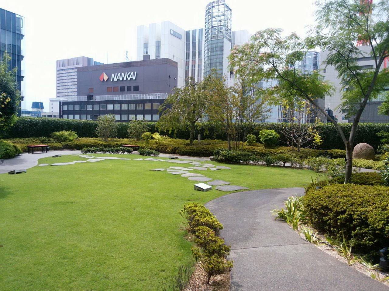 屋上庭園は、歌舞伎座の上に建つ歌舞伎座タワーの5階にあります。都会のど真ん中にある庭園で一般にも無料で開放されています。庭園内は整備されており、石碑などがありましたが、特に見ごたえがある訳でもなく、残念ながら魅力的ではなかったです。
