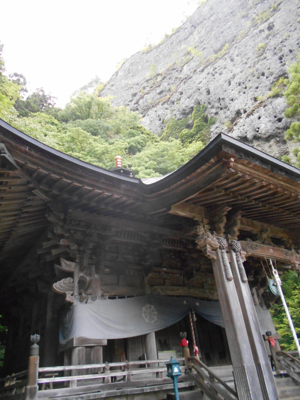 お堂は崖の山際にあって、とくに納経所は岩盤にへばりついて建てられています。岩にはくぼみがいくつもあって、昔はそこで修行したのだとか。山深くて、いかにも修行の地という雰囲気がします。