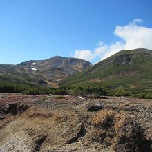 旭岳ロープウェイの姿見駅(標高1600m)からと、黒岳ロープウェイ&リフトの黒岳7合目(標高1520m)から、そして愛山渓(標高1050m)から沼の平、永山岳を経由して行くルートがあります。