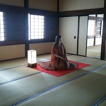 姫路城・西の丸にある長い廊下(百間廊下)とその脇にある部屋を通りすごした先にある、千姫化粧櫓です。彼女が嫁入りした際に、自由に使える空間を、ということで作られた部屋だそうです。千姫のオブジェ人形が置かれています。