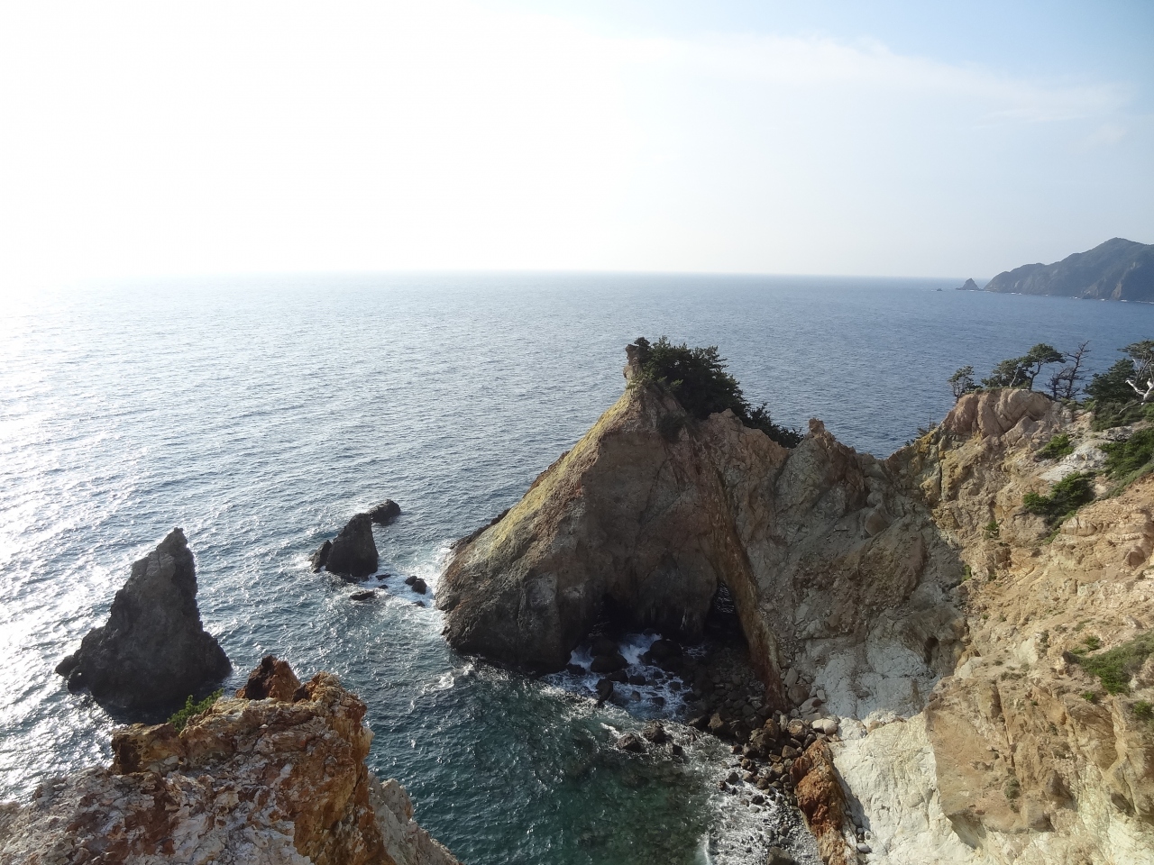 伊豆半島観光の終盤として、西伊豆にある黄金崎を初めて訪れました。無料の駐車場は30台ほど停められます。駐車場の南側には三島由紀夫氏の文学碑「獣の戯れ」が立っています。自然の岩の上に展望台が造られていて、神社側の手すりには絵馬が飾られていました。ここから下って北側にも展望台があるようですが、時間がなくて行かなかったです。でも、この展望台から下に見える巨大な岩の中で、馬の横顔のような巨岩が見えます。案内看板をよく見ると、馬ロックと紹介してあります。うまく名付けたものです。この岩に向かって勝負運を願うと必勝だとか、かけ事に長けた人なら絶対訪れるべきスポットでしょう。よく晴れていれば、北北西側に富士山が見えるそうですが、この日は雲がかかっていて富士山が見えなかったのは残念。違う日にシャッタ-チャンスを狙ってみたい。