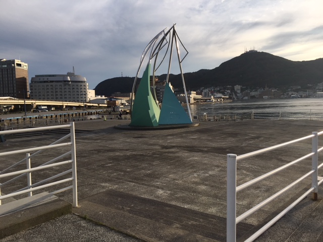 函館駅から歩いて5分程の場所に青函連絡船記念館摩周丸があります。その近くにある広場です。たぶんイカを模したものであろうモニュメントがあるだけで他に何もありません。ただの広場です。海に面しているので、釣りをしている地元の方が何人か居ただけでした。