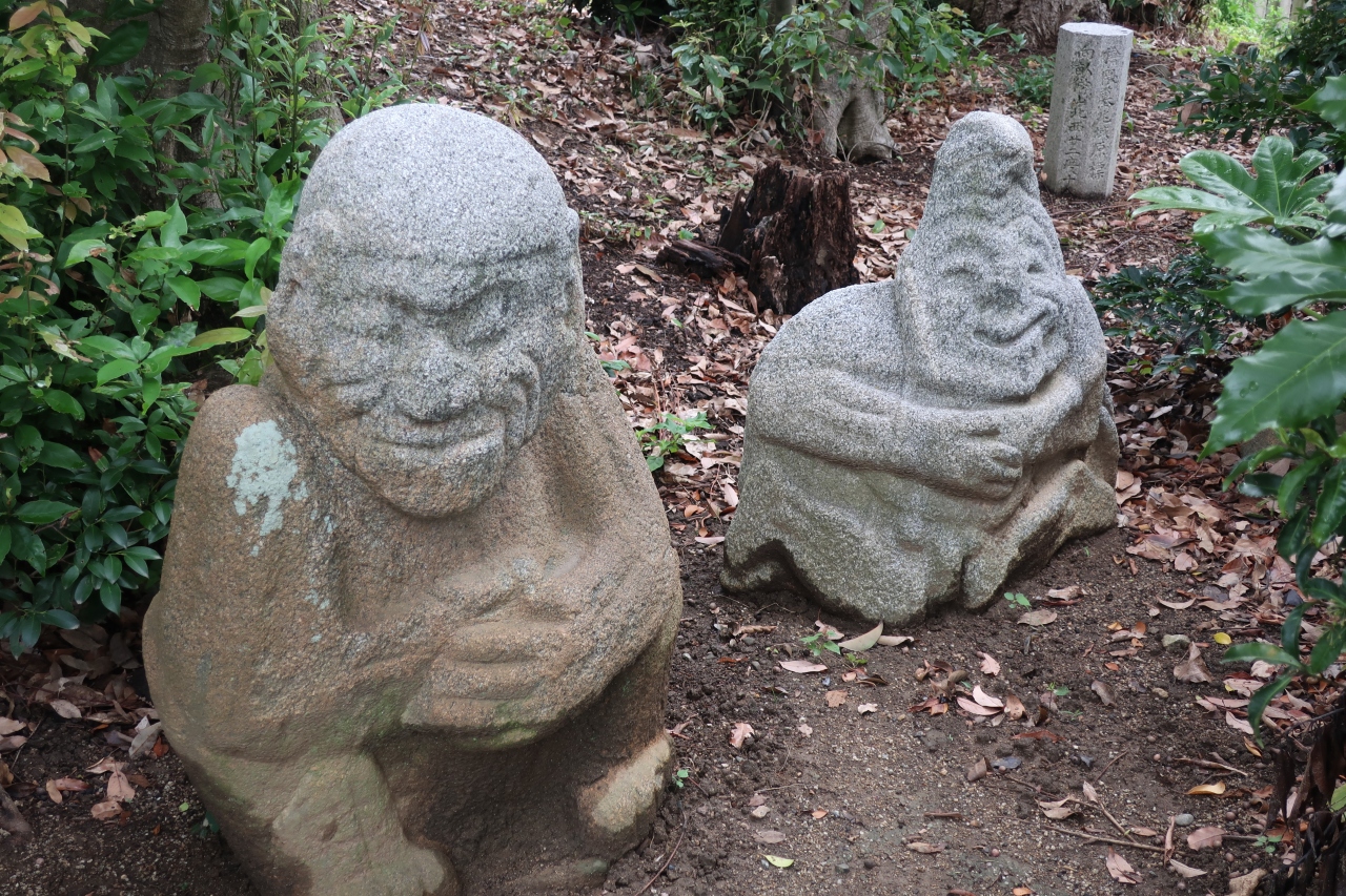 そして、ここを訪れるのは何を言っても猿石を見るためです。石柵の中に左右2体ずつの面白い顔をした石像は必見です。