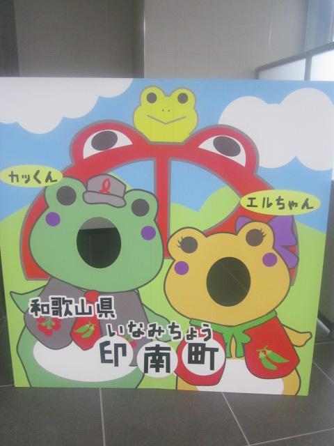 と申しますのも、印南町は、カエルマニア的には絶対に応援しなければならない、カエルさんを通じた町おこしを目指している町でもあり、まず町のランドマークとして、駅のすぐ傍に立派なかえる大橋(紀勢本線車窓からも眺められます)がありますし、それ以外にも、町の随所で可愛らしいカエルさんの姿に出逢えます。そして圧巻は、駅方面からですとかえる大橋を渡って対岸にある印南町役場。ここには、町のキャラクターである、「カッくん」と「エルちゃん」の顔はめパネルが設置されていますし、カエル好きであることをアピールすると、色々なカエルさん関連のシールやマグネット、パンフレットなども頂くことが出来ます。11月には印南漁港界隈で、「印南かえるのフェスティバル」(2018年は11月18日開催予定(この年で第10回目を迎えます))ですので、カエラーの方は是非、和歌山=パンダのイメージに反旗を翻すべく、和歌山が誇るケロケロスポットに足を運んでみて下さい。