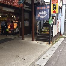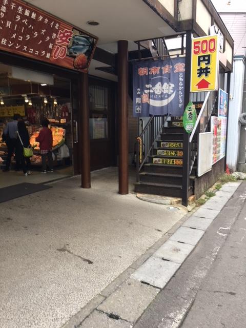 函館の朝ごはんで有名な朝市に行きました。たくさんのお店があって、どれにしようかと迷いましたが、朝から本格的などんぶり飯は無理だったので、ここのワンコイン(500円)の丼に決めました。食堂は市場の2階にあります。何種類かのワンコイン丼がありましたが、イカソーメンの丼にしました。そこそこ美味しかったです。