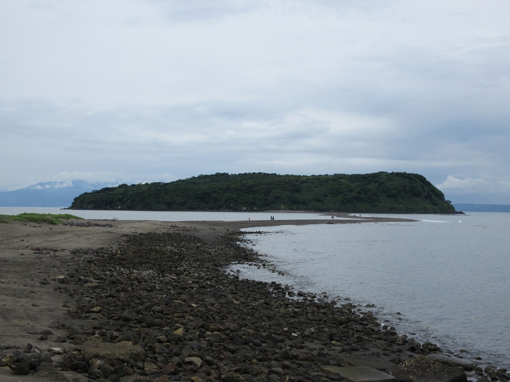 指宿駅からレンタサイクルで到着、大潮と中潮の時のみに現れる砂州で知林ケ島に徒歩で渡れます。徒歩で片道30分くらいかかります。足下は砂なので足が取られ思ったようには進めません。片道800mが近くて遠かったです。