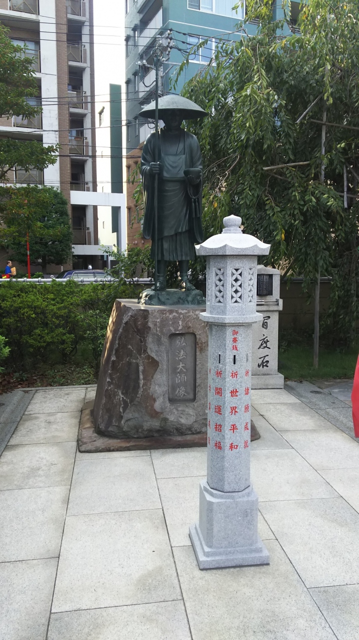 高野山東京別院の門付近に立っている弘法大師様の像です。