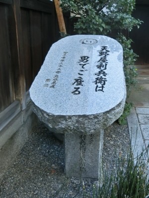 京都大神宮を訪れる際に立ち寄りました。山門前には、変わった形の石碑があり、そこには「天野屋利兵衛は男でご座る」と興味を惹く文言がありました。気になったので、よく見ると石碑の支柱の部分に「赤穂義士を陰から支えた天野屋利兵衛墓所地」とありました。境内には、件の天野屋利兵衛のお墓のほかにも大内内蔵助の母親のお墓や嵐寛寿郎のお墓もありました。