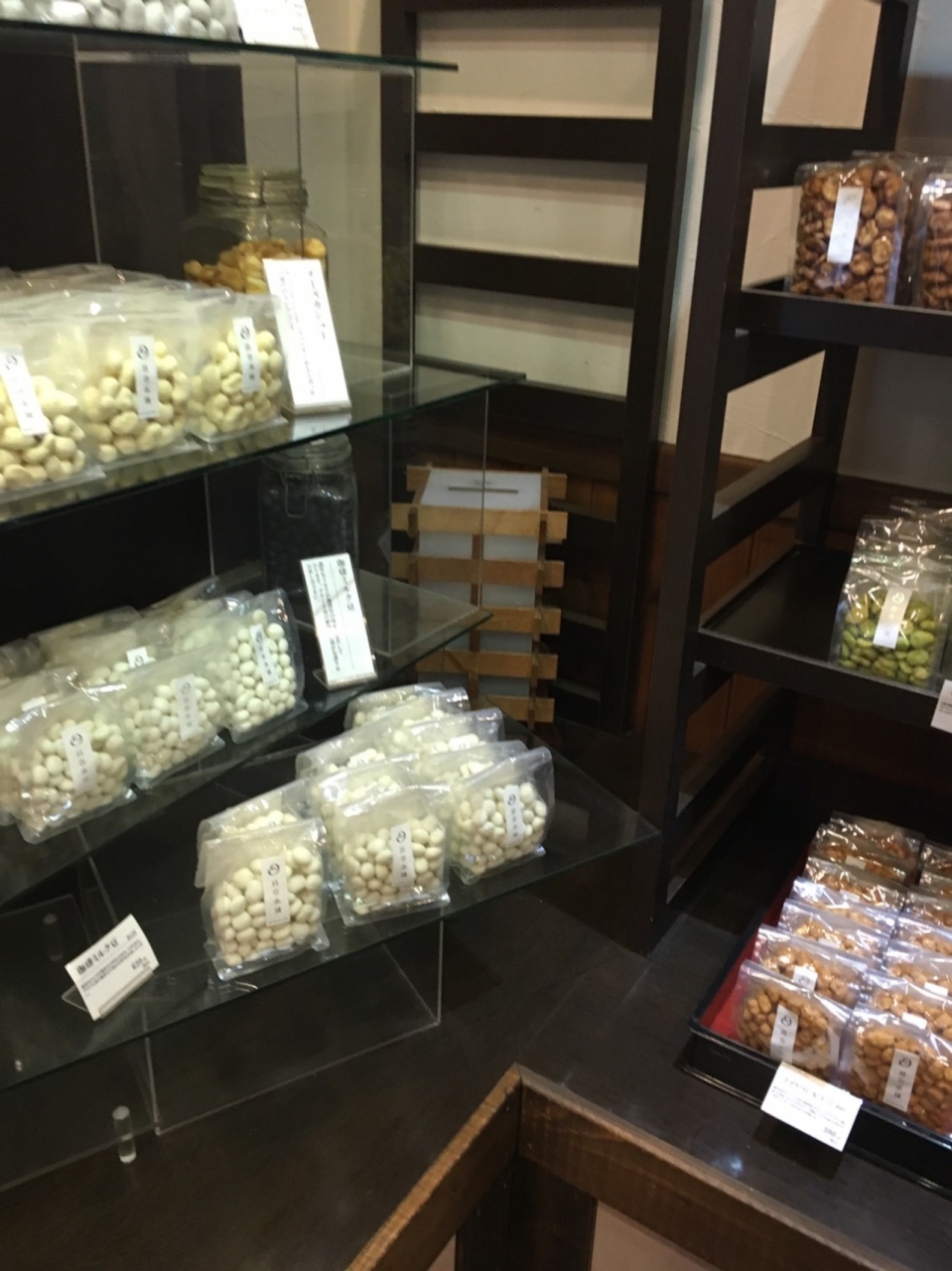 草津温泉の西の河原通りに面した店舗です。散策をしていたら偶然みつけ入ってみました。豆菓子がたくさんあり、甘い系からビールのつまみになりそうなしょっぱい系までたくさんありましたが、試食ができたのでいくつか選んで購入しました。食べやすいお菓子で気に入りました。