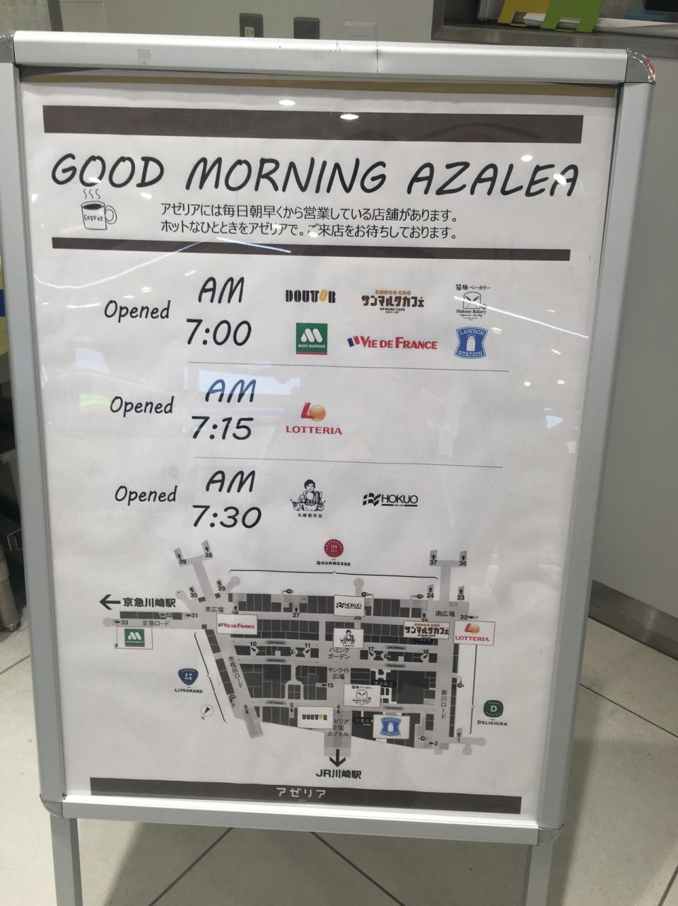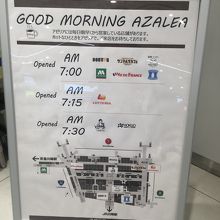 アゼリア内でモーニングを食べようと思い利用しました。アゼリア内には飲食店がありいくつかのお店が朝早くから営業していてモーニングがいただけます。営業時間別に見やすく書いてくれているため時間に合わせて利用することができました。