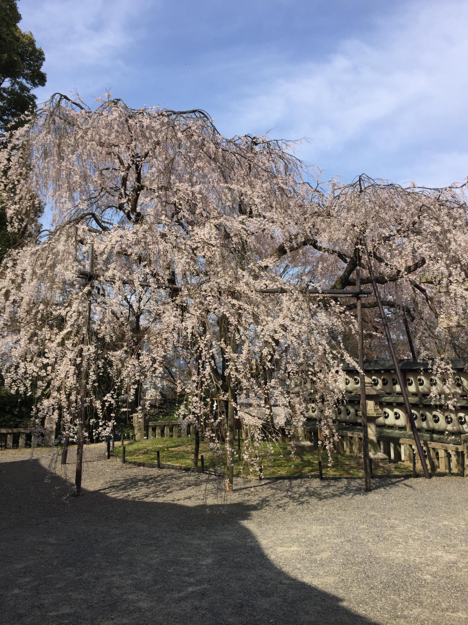 大石神社のことはあまり知りませんでしたが、京都の桜の事を調べていたら、大石神社のしだれ桜がとても美しいという事を知り、行ってみることにしました。このしだれ桜は大石桜といって、境内にたくさん飾られている提灯にかかる風情がとてもいいです。