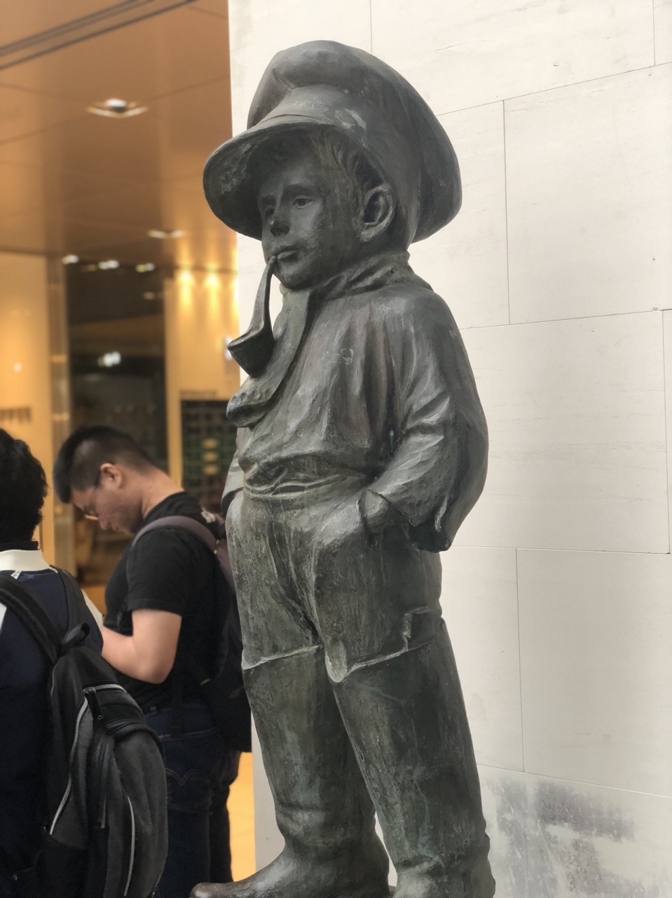 JR横浜駅西口徒歩数分の横浜モアーズの一階の正面入り口付近にある可愛い少年の像です。