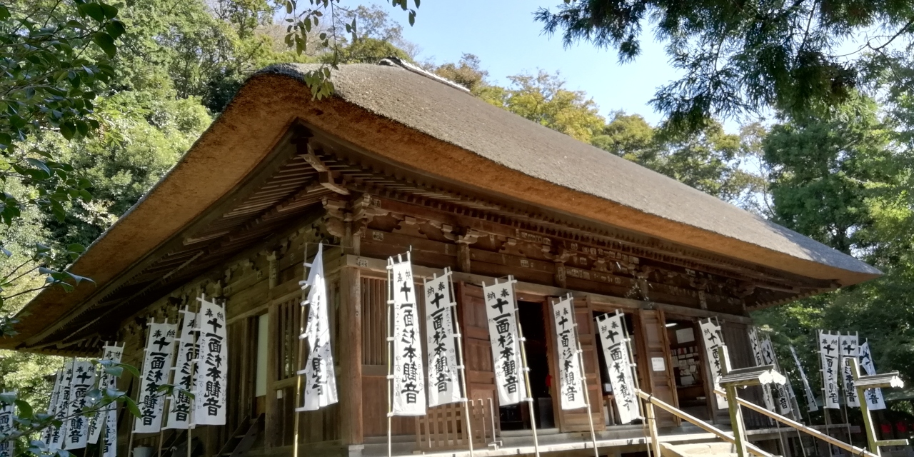 坂東三十三観音霊場の巡礼を始めることにしました。巡礼と言っても全行程を徒歩というわけではなく何回かに分け公共の交通機関を使っての札所巡りです。第一番札所は鎌倉の杉本寺です。鎌倉駅東口の5番バス乗場から京急バス金沢八景行きで10分弱、杉本観音で下車するとほぼ目の前に杉本寺があります。参道の石段の両側には十一面杉本観音の白い幟旗が何本もたなびき鎌倉最古の寺の趣を感じます。石段を上ると茅葺の仁王門、その先の苔の石段は通行止めで左側の参道を上っていくと茅葺の本堂(観音堂)があります。堂内中央に運慶作の十一面観音像があります。迫力あるお像ですがこれはお前立ちです。御本尊は本堂に上がり内陣の更に奥の大悲殿に安置されている三体の十一面観音像です。正面から拝めますがやや距離があり暗い為、細部まではよく見えませんが神秘的な有難味を感じます。堂内の納経所で坂東三十三観音霊場専用の納経帳を買い求め御朱印を頂くと十一面大悲殿ときれいに墨書下さいました。右上には坂東第一番、左上には発願の印があり巡礼の始まりに気が引き締まりました。