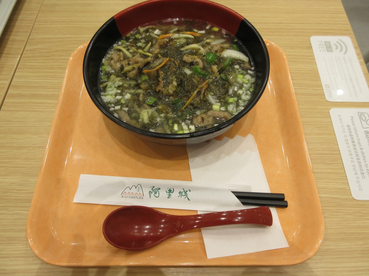 アクアシティお台場1階にあるフードコートに入っています。中華麺類、各種チャーハン、お粥の他にシューマイや肉まんなどのサイドメニューがあります。高菜タン麺を注文しました。ピリ辛の高菜をイメージしたのですが、高菜は特に目立った味はなく、コショウ辛い塩味のスープでした。細麺と細切り肉が多いのが特徴です。想像した味ではなくあっさりした中華麺でした。サイドメニューをいくつか注文した方が自分好みの昼食になったかもしれません。1つの麺だけで判断するのは失礼だと思うので次回は他の麺かチャーハンを頼んでみようと思いました。