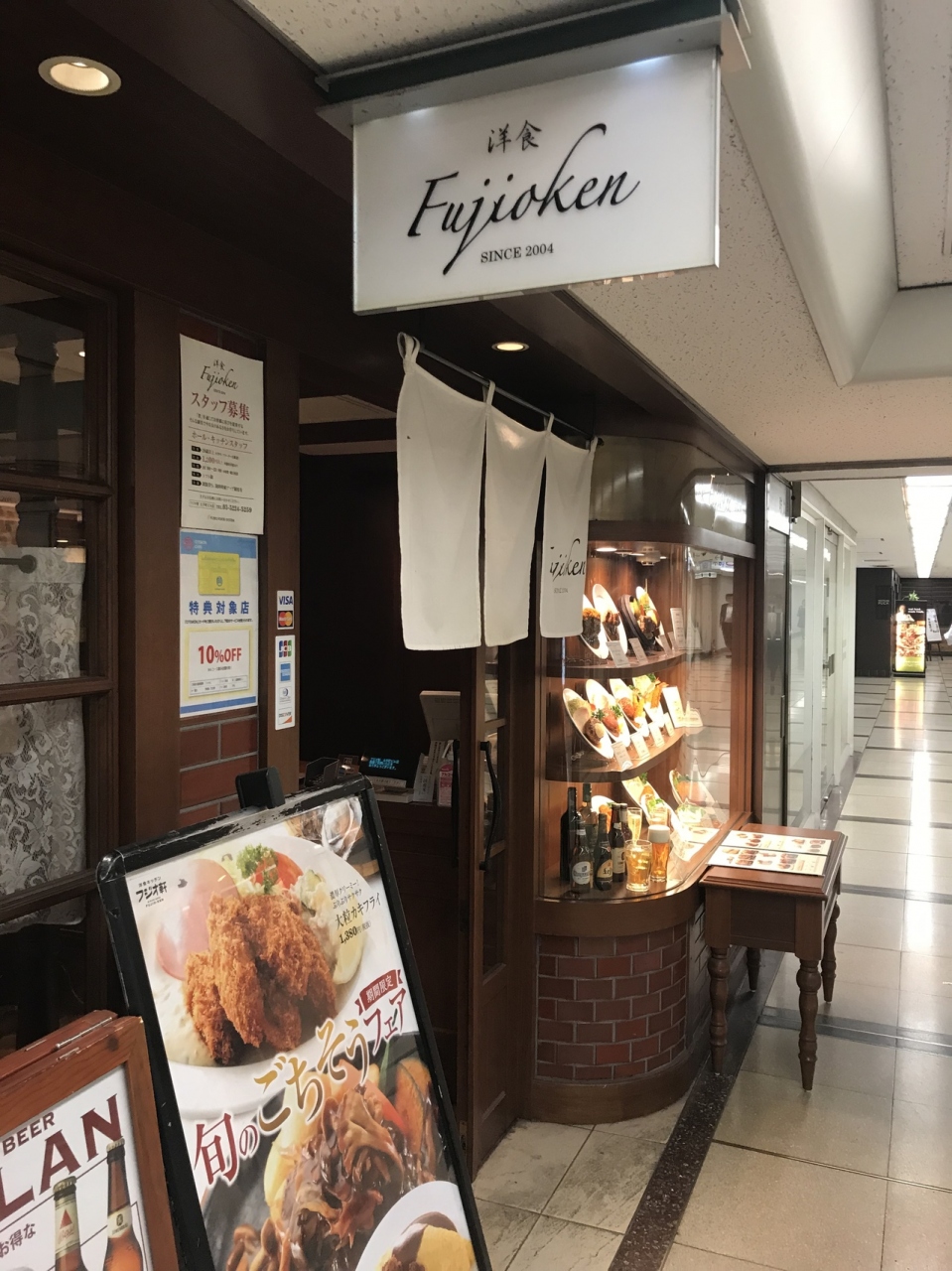 地下鉄丸ノ内線の大手町駅と地下で直結している、フジオ軒は洋食屋さんです。ランチタイムは店内が混雑しています。ランチメニューのデミグラスかつランチは、薄く伸ばしたカツレツが結構ボリュームがあります。サラダ付きです。