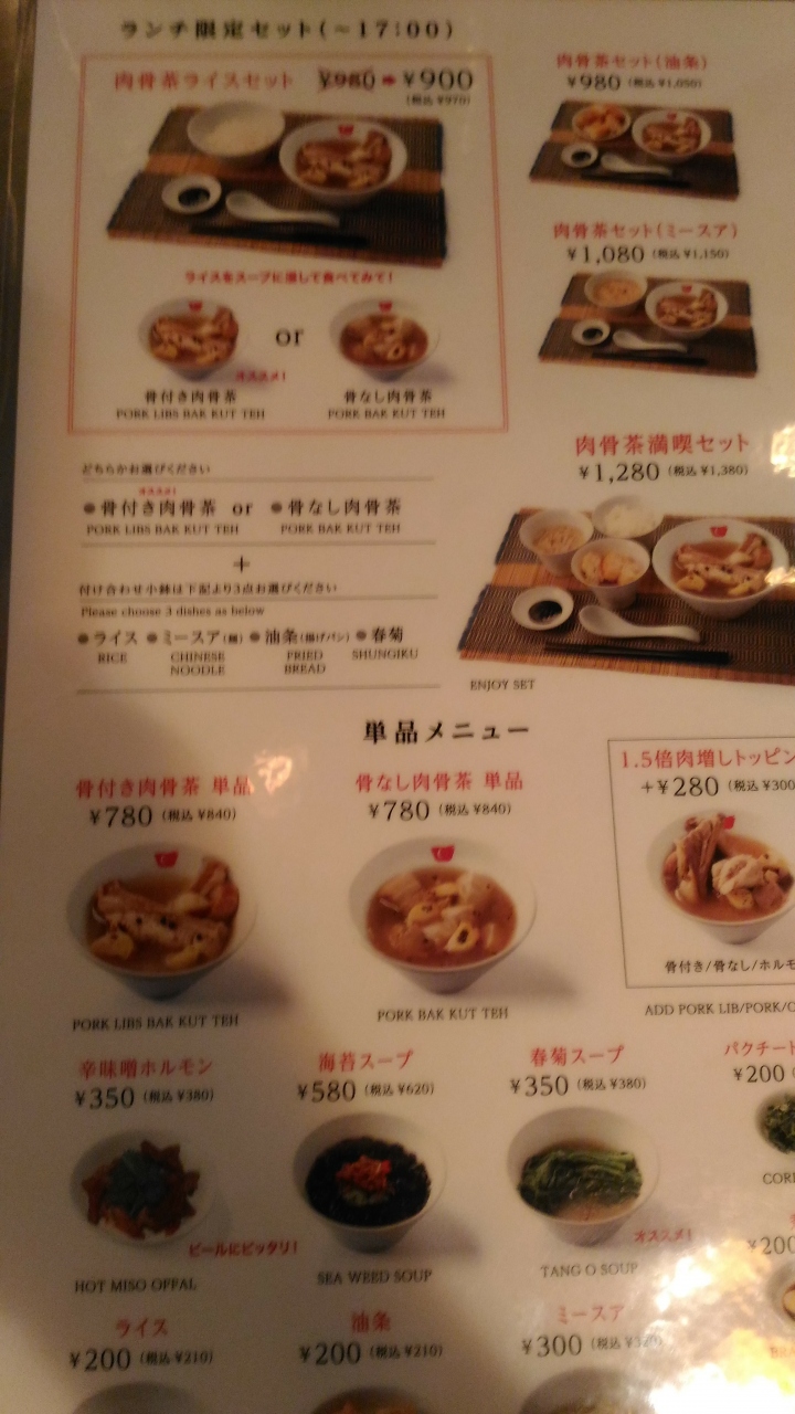 シンガポールの名物、バクテーの専門店。オープンしたてで、芸能人の花がたくさん飾ってありました。肉の種類、量が選べます。肉の出汁がでたスープもとっても美味しいです。シンガポールより美味しいと言う人もいるぐらいです。