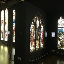 実際にイギリスの教会の窓に飾られていたものを集めたのだそうです。ステンドグラスには、ストーリー性があるものもあり、興味深く見ることができました。吹き抜け構造をうまくつかった展示の仕方で、圧倒されます。