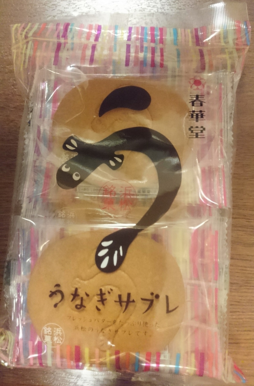 1階の工事直売店ではうなぎパイが売っている。試食もアリ。お得パック(透明な袋に入っる)とうなぎサブレーを購入。
