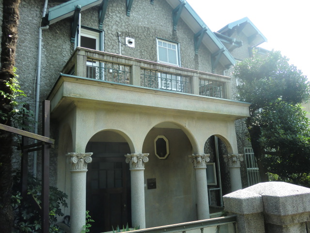 絵にかいたようなテラスがある洋館で、見応えがありますが、現在も現役の住宅のようで、内部に入れないのが残念です。