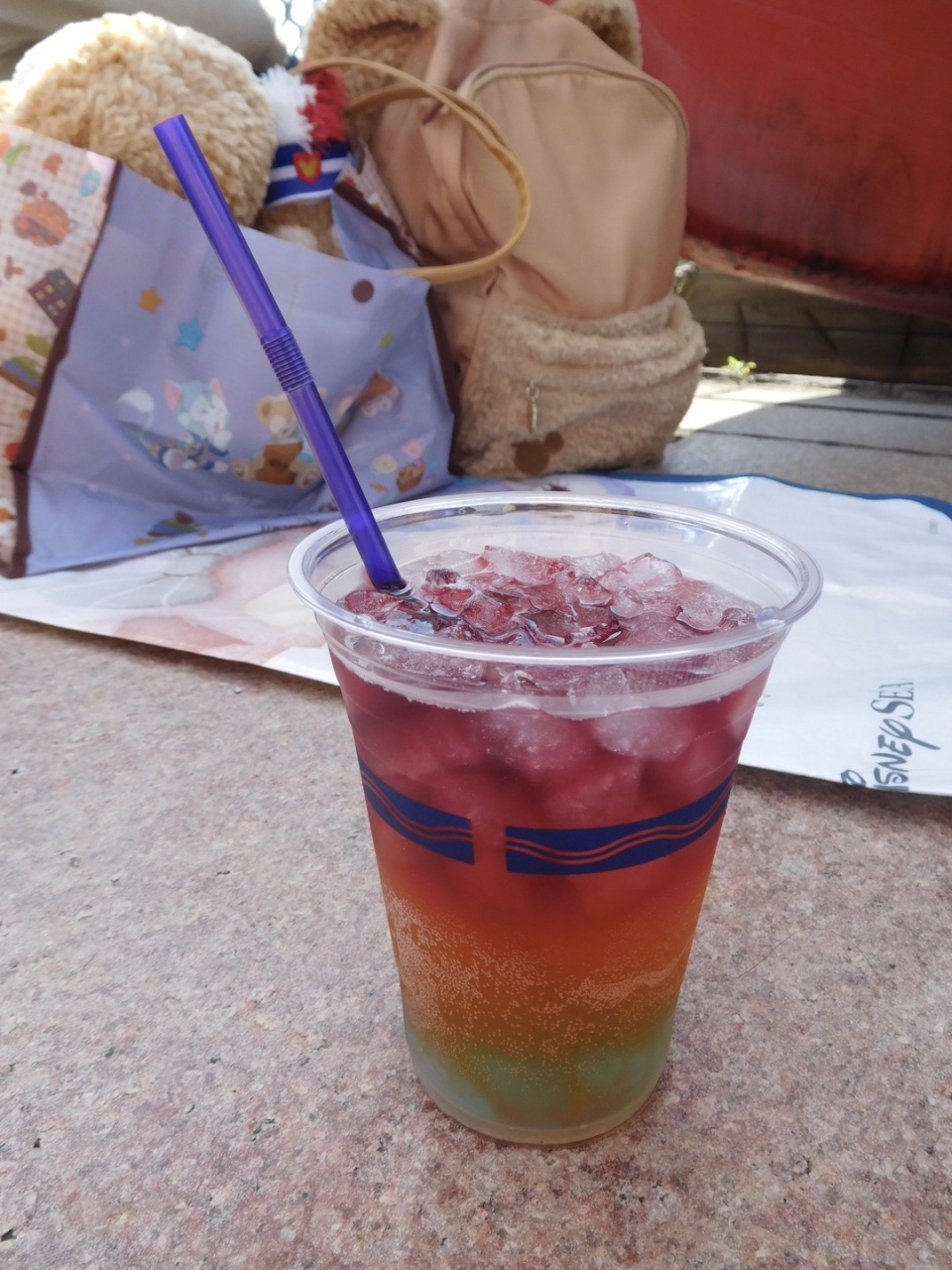 ディズニーシーではランドと違ってアルコールが頂けますが、ほぼアルコールは感じない程度です。