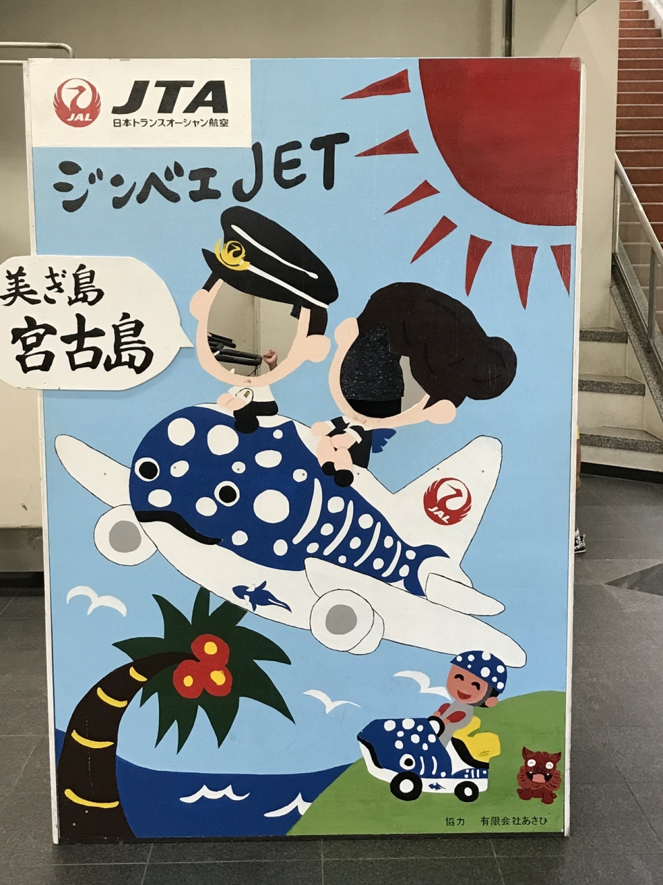 ジンベイジェットは知っていましたが、こちらの車両は初めて見ました。青の車両とピンクの車両のジンベイ鮫柄でしょうか?
