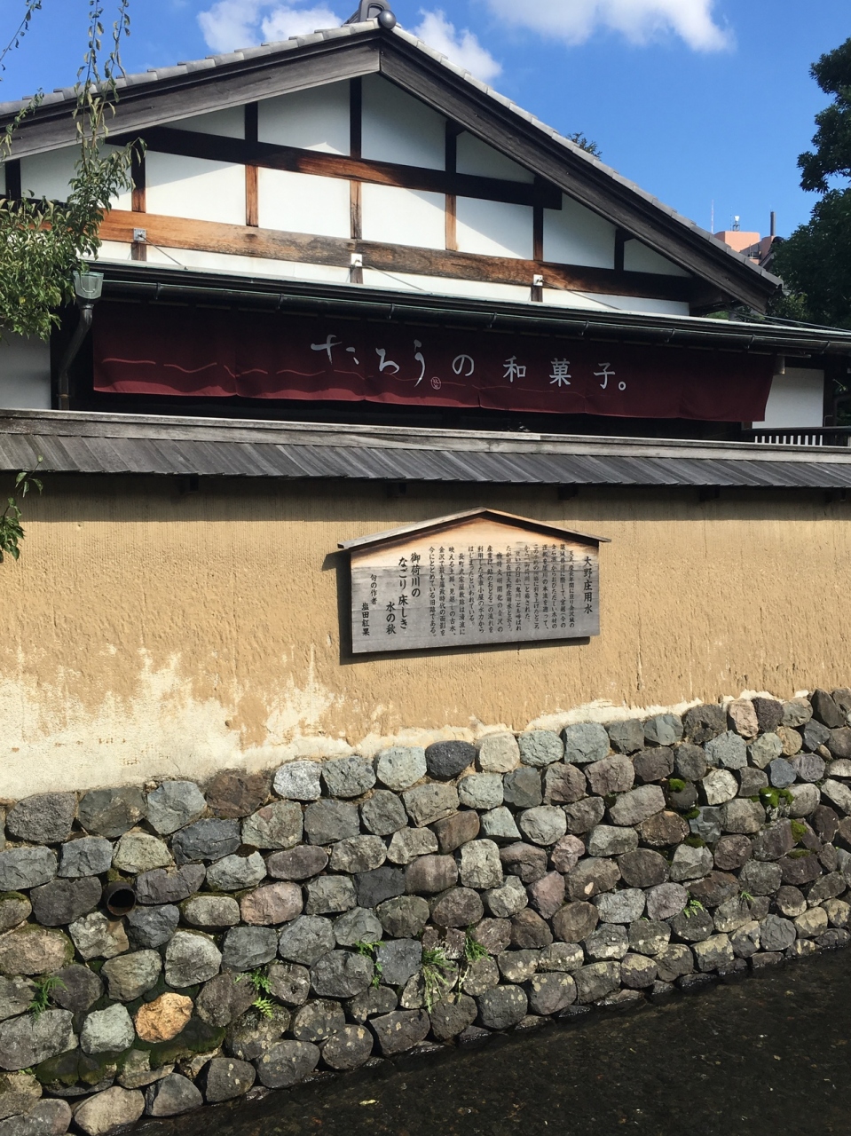 この用水の説明の看板は、たろうという和菓子屋の塀にありました。