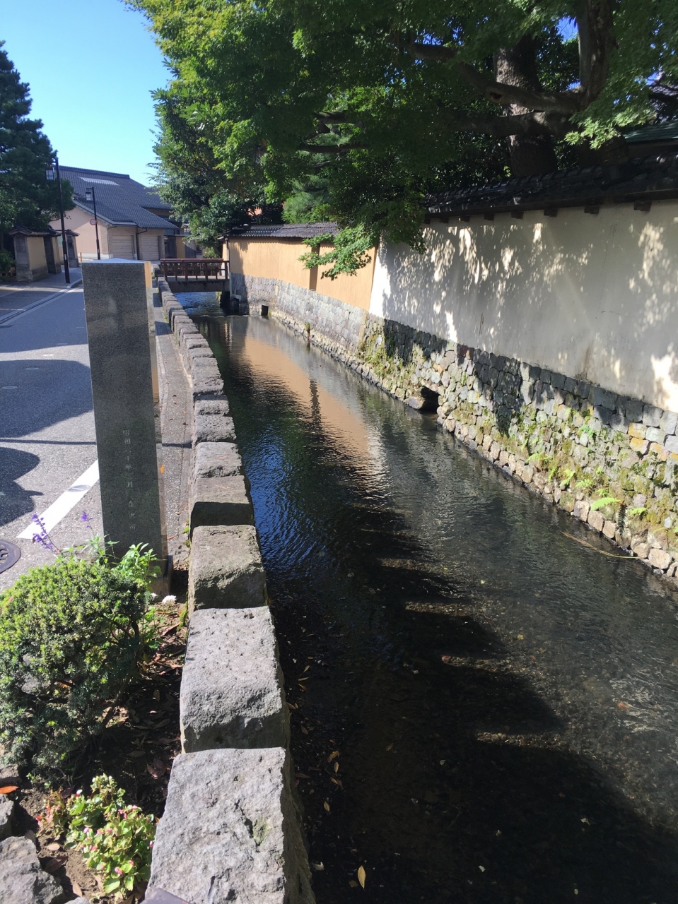 香林坊のバス亭を降りてから、徒歩で4分ほどのところを流れています。