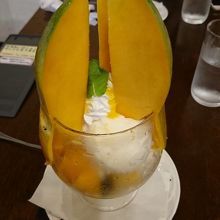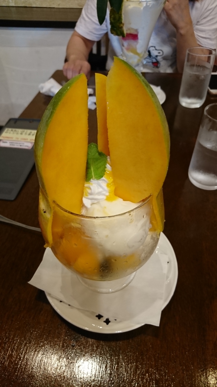 沖縄らしいフルーツを使ったスイーツがいっぱいありますが、パインパフェとマンゴーパフェを注文しました。マンゴーの実を2個くらいは使っていそうなパフェでマンゴーたっぷりで最高でした。