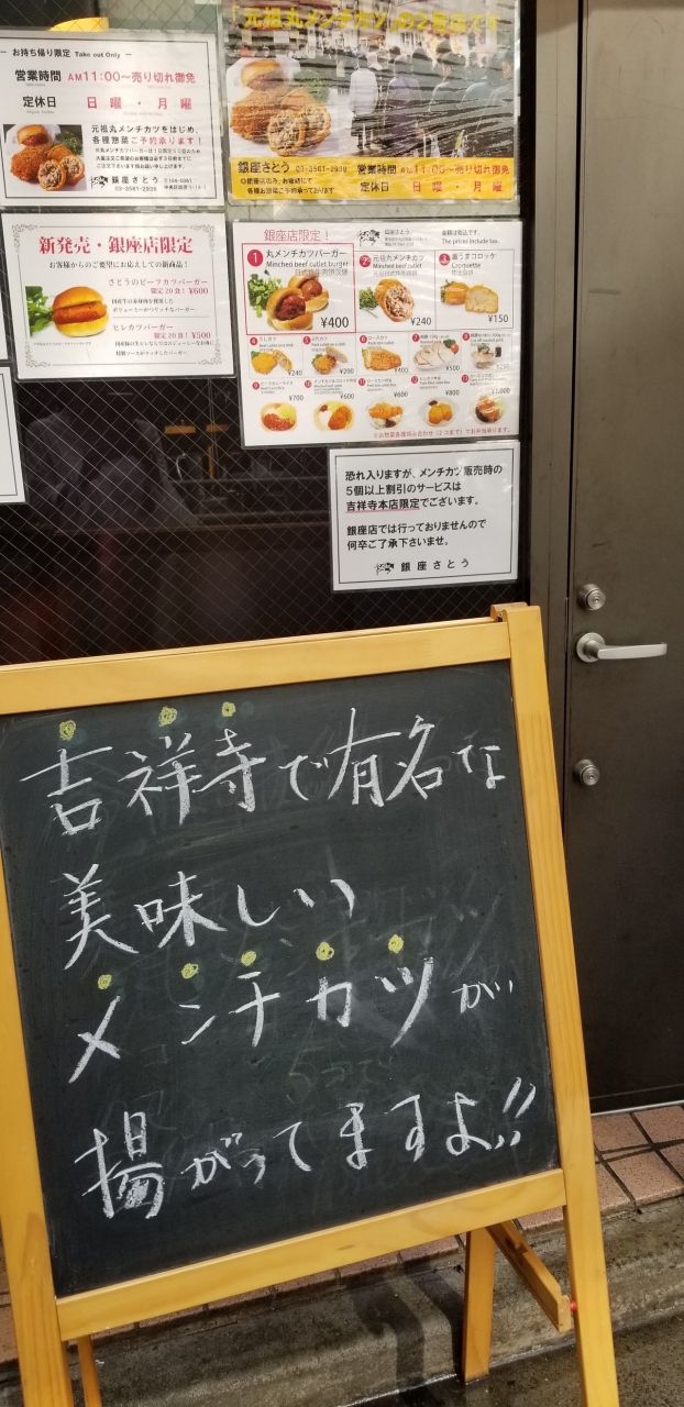 吉祥寺では行列の絶えないメンチカツのお店の銀座店です。銀座一丁目のはずれのほうにあるこちらのお店ではほとんど並ばずに購入できました。