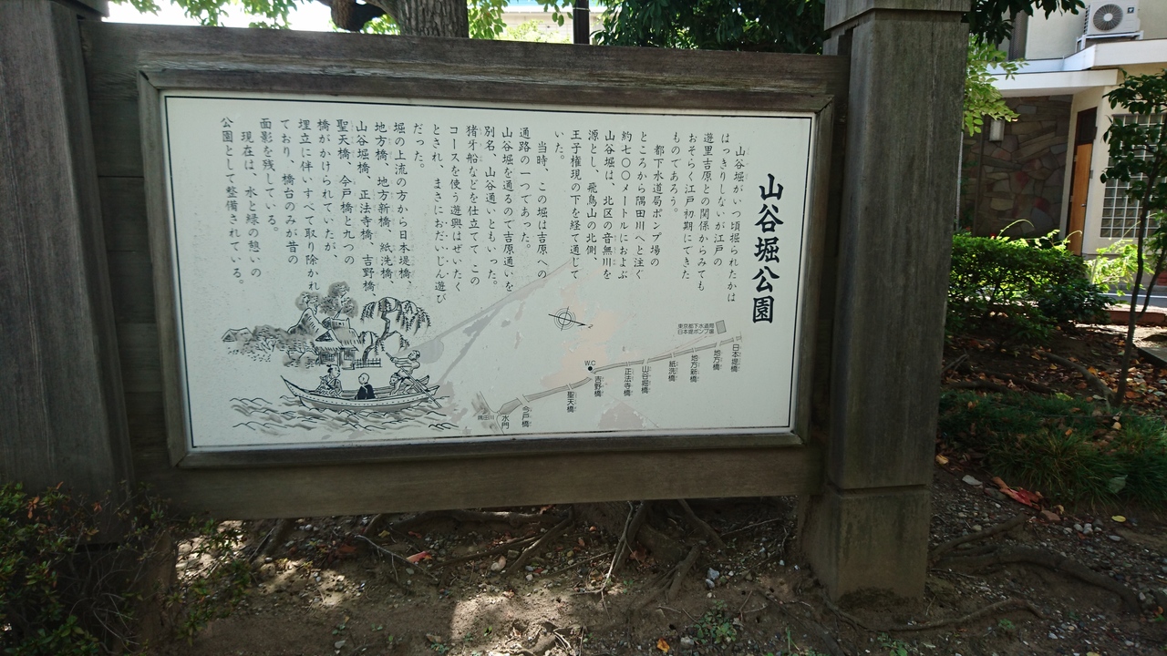山谷堀公園は、かつて王子の音無川から隅田川に注ぐ水路を埋め立てて整備したため、とても長細い公園でした。江戸時代には吉原に向かう猪牙船で賑わっていたとか。700mに渡る細長い公園ですが、花などが植えられており、意外と歩きながら楽しめる公園でした。