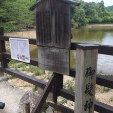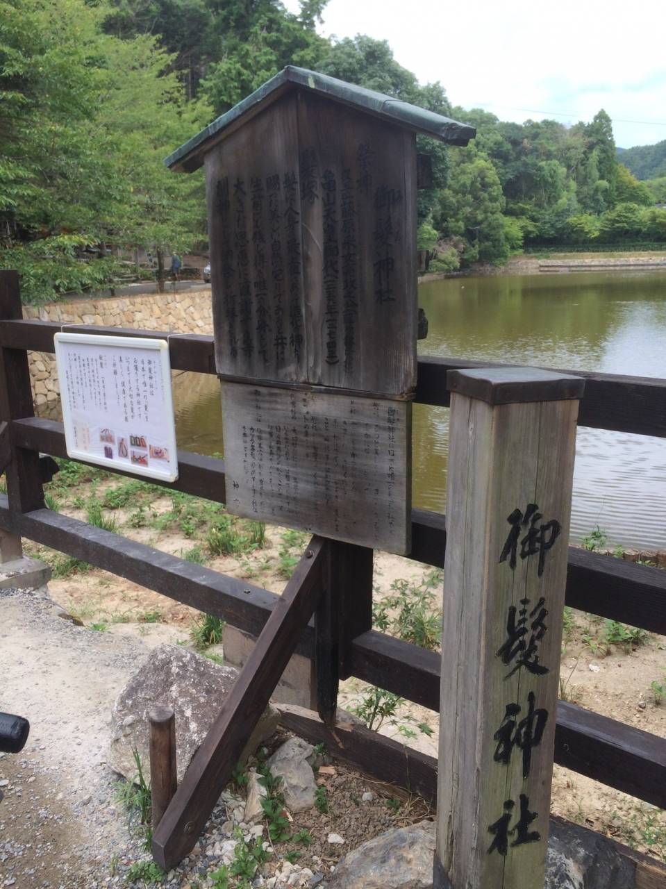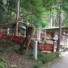 トロッコ嵐山駅からも徒歩5分ぐらいで、目の前には貯水池のような大きな池がありました。なだらかな斜面にある神社です。赤い柵がありましたが、周辺の木が少ないので、神社だけポツンとある印象でした。お守りや絵馬も販売しています。鳥居は二つありますがこじんまりした神社でした。