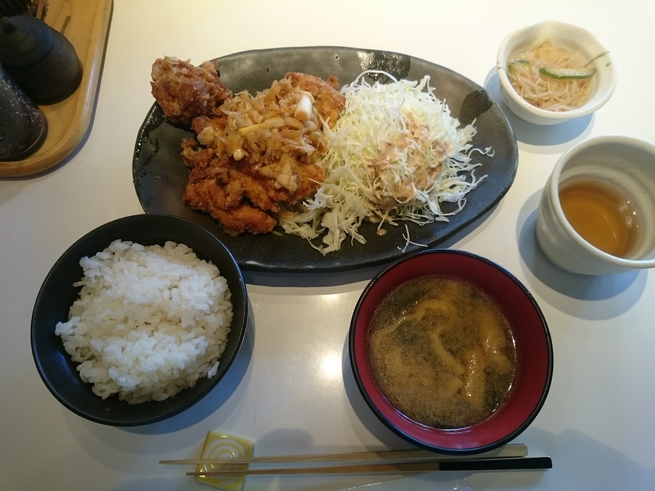 今回は鶏の唐揚げネギ塩ソース定食を頼みました。