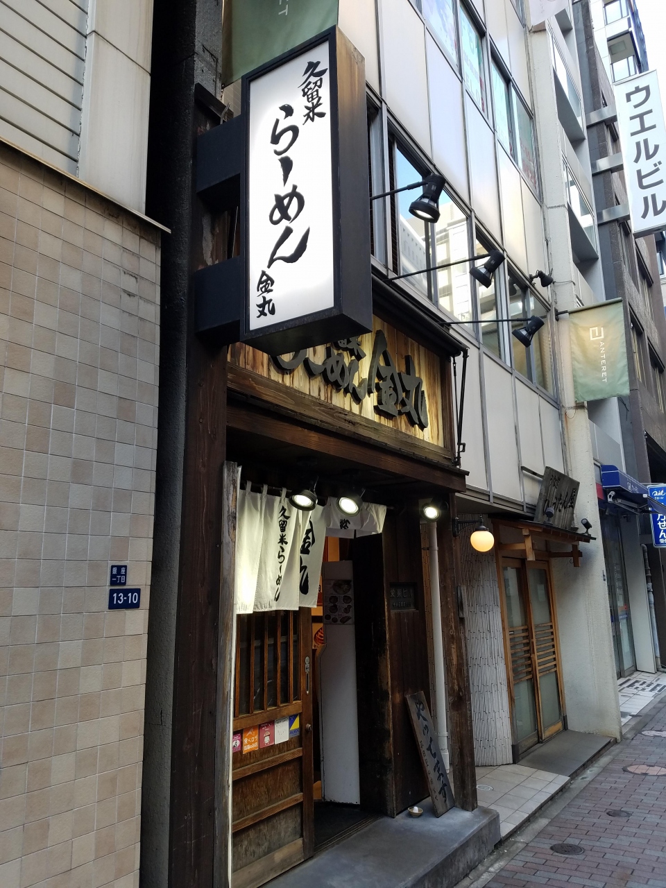 久留米ラーメン金丸は、銀座1丁目、中央通りから昭和通りに向かう裏通り沿いにあります。久留米ラーメンは、博多豚骨と同様に濃厚スープと細麺が特徴です。辛めん、ワンタンなどメニュー豊富ななか、頼んだ味たま入りラーメンは、しっかりした味ながらまろやかで美味しかったです。