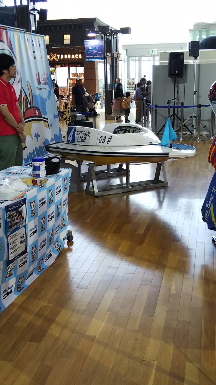中部国際空港のイベントプラザで中国イベントやってました。チャイナドレス着た中国人だらけ。日本の空港ではないくらいいました。しかし、イベント会場に便乗して常滑競艇がブース出して競艇のVR体験やってました。また、ボートも展示してました。