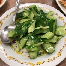 餃子はどれもパリパリで美味しいし、たたきキュウリもあっさり塩味で美味。