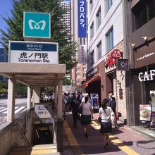 駅を出たら、霞が関ビルや虎ノ門ヒルズなどのビルが良く見えるので、見逃さないように