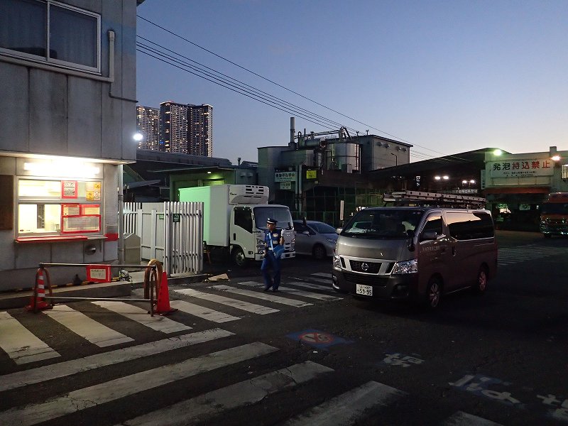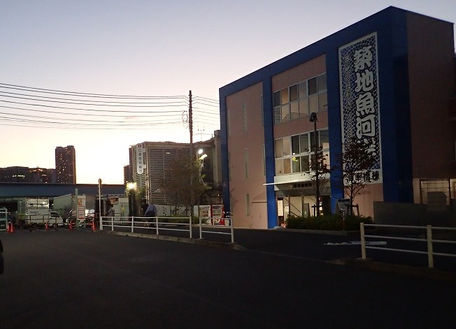東京都中央卸売市場築地市場というのが正式名称。2018年10月7日、83年の歴史を閉じて閉鎖された日の夕方、様子を見に行ってきた。場外市場の側から行くと、東側の入り口が開いていた。同じように様子を見に来ていた人たちがいて、何人かがこの門から市場内へ入ろうとしたが、守衛が申し訳なさそうに「一般の方は入れないのです」。そうだろうな、やっぱりな、と思って、門の手前から写真を撮った。薄暮の時間だっただけに、いっそう閉場が寂しく感じられた。