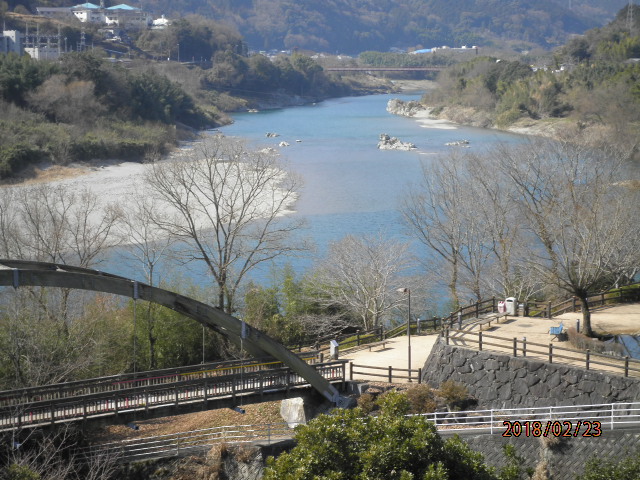 徳島県を流れる吉野川中流域の景勝地で、県の名勝・天然記念物に指定されているそうです。徳島自動車道下り線吉野川サービスエリアから、このあたりののどかな風景とともに、吉野川の流れと淵の奇岩の風景を望むことができ、気持ちがくつろぎます。