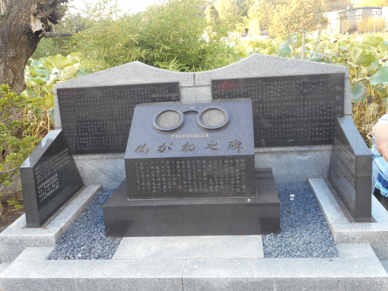 石碑にはメガネが描かれておりユニークな石碑ですが、足を止める人も少なかったです。