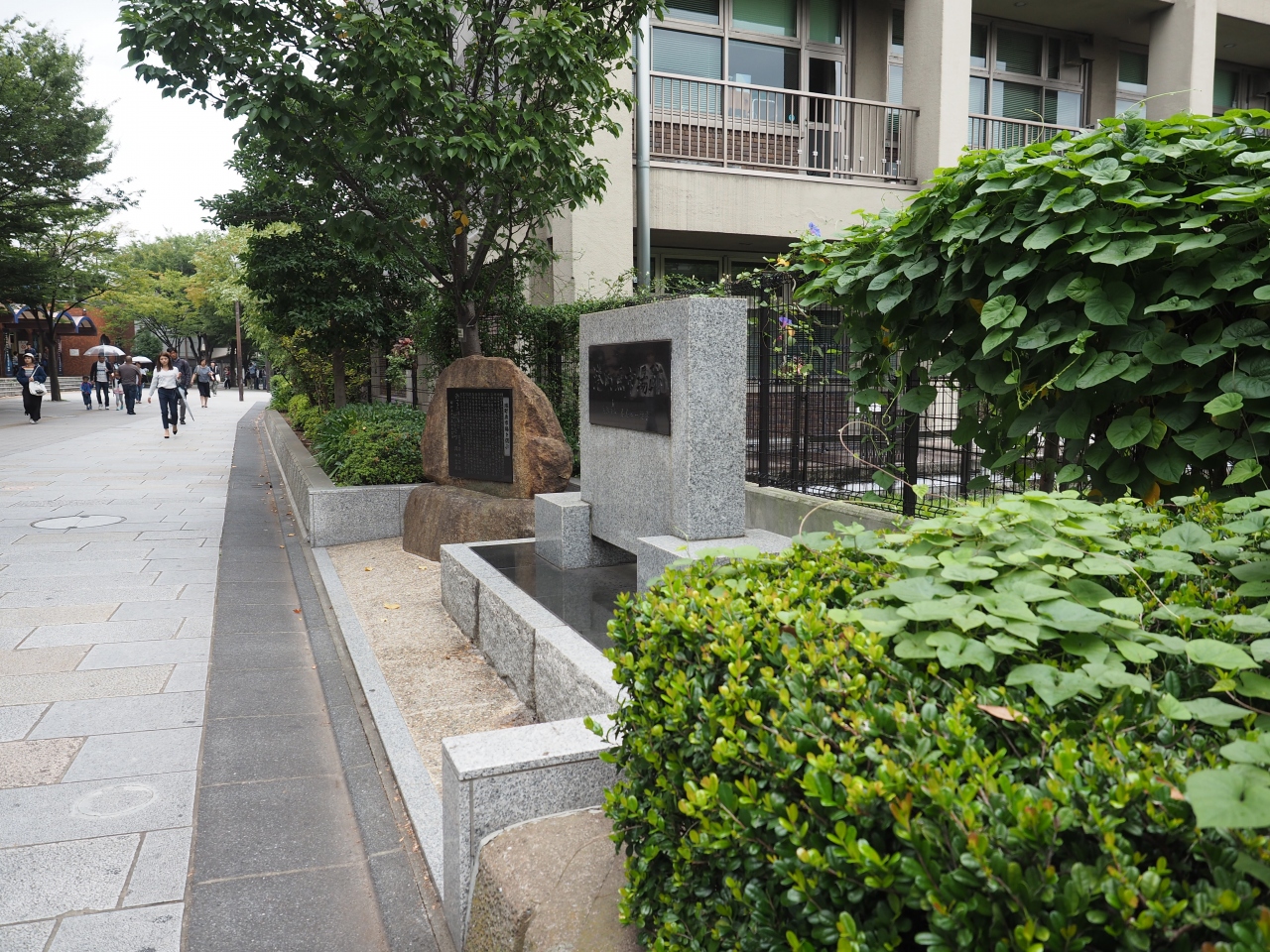 それほど小さな石碑ではないのですが、案内板などがないためか周囲の景色に埋没していて、あまり足を止める人もいない寂しい雰囲気でした。かつてはここに魚市場があったということで、どんな賑わいだったんだろうとか、もっと海が近かったんだろうかなどと想像できます。