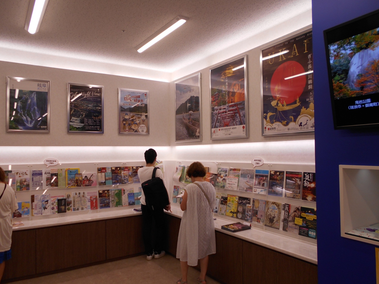 JR岐阜駅2F中央改札口前にある観光案内所。昨年の平成28年10月にリニューアルオープンした明るく新しい案内所で観光名所や行事、御土産等の観光情報やパンフレット、マップ等が揃っていて便利です。これから岐阜観光というときに立地が大変良いです。
