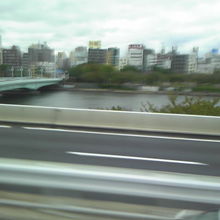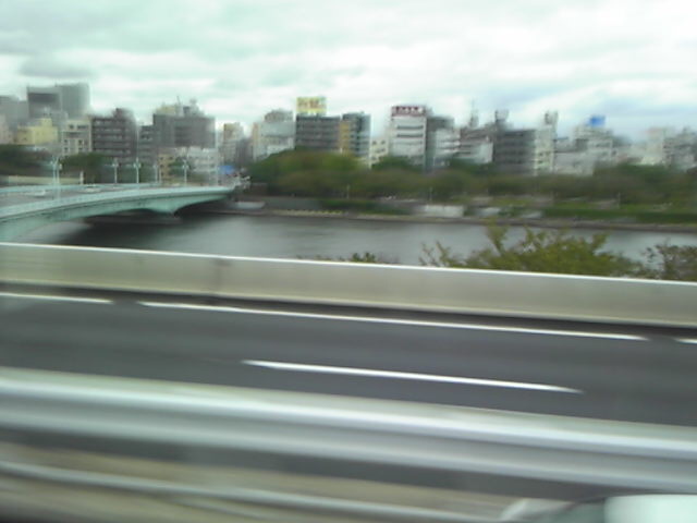 高速道路を走るバスの中から、隅田川を見学することができました。