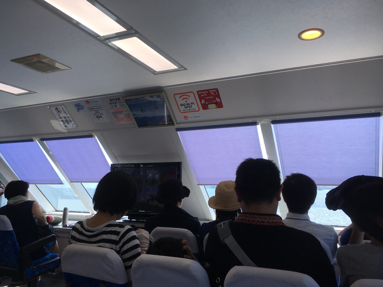 帰りは、甲板の席に座って景色を眺めながら乗船です。
