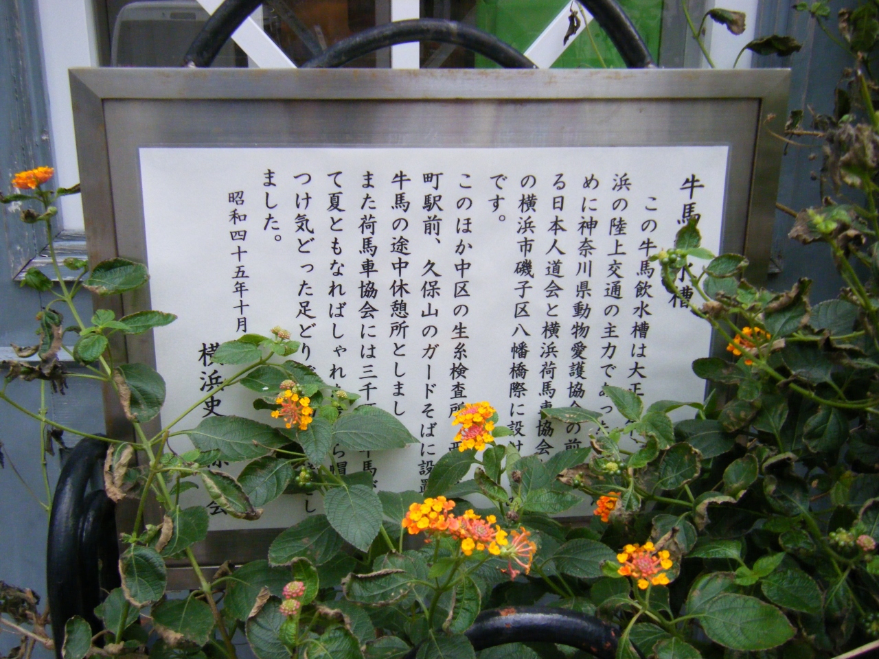 JR関内駅から徒歩5分ほど、馬車道の近くにある馬車道十番館というレストランの目の前にありました。かつて荷物輸送の主な手段が牛や馬だった頃の遺構だそうですね。日本語の文字が右から左に書かれているあたりが歴史を感じさせてくれます。現在の関内の風景から、馬や牛がこのあたりを歩いていたなんて想像もできないですね。こういった遺構を残してくれているのは嬉しいですね。