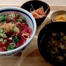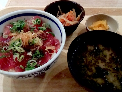 オーダーしたピリ辛鮪丼、ごはんがたっぷりでボリュームがありました。