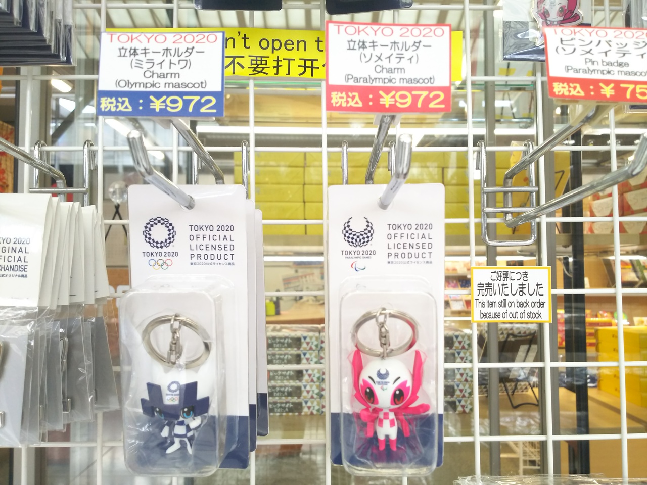 店外に並んでいるキーホルダーや