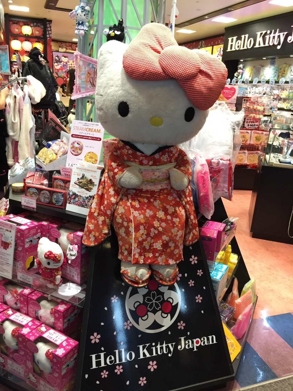 ハローキティジャパンは ダイバーシティ、成田空港などにも有りますね。お着物を着た大きなキティちゃんが座ってました。キティちゃんって顔しかないイメージなので 全身キティちゃんは意外でした。当然ですが、キティちゃんの商品がいっぱいです。