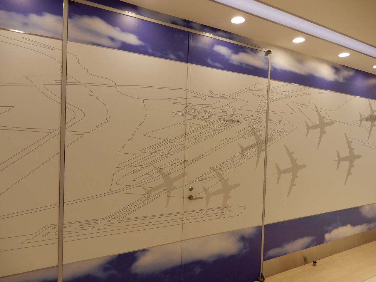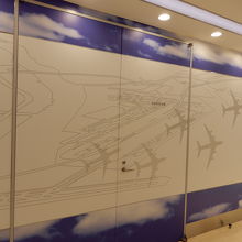 反対側には空港から飛び立つ飛行機たちの絵と、