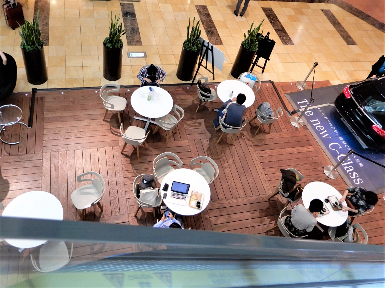 エスカレータの真下の一角すべてがメルセデスのショールームのようです。