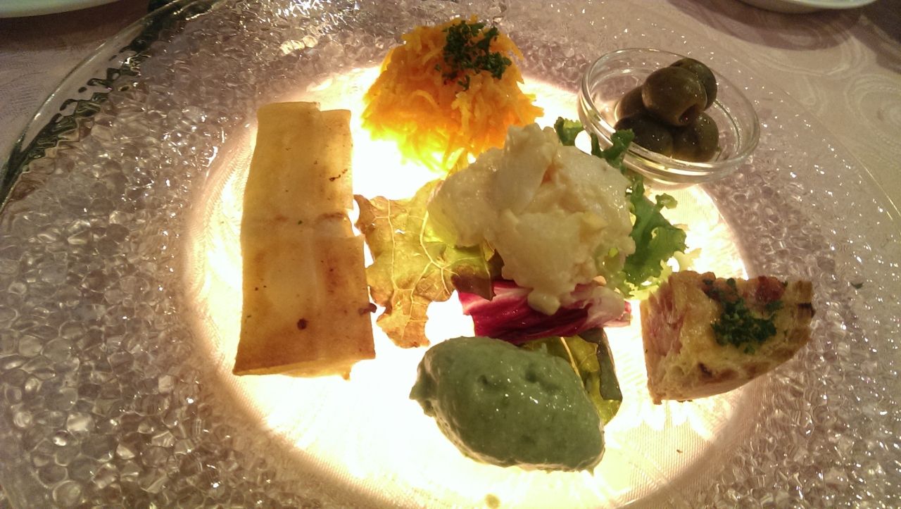 コスパがよいと噂をきき友人とのディナーにいきした。テーブルにライトがついていて、食事が運ばれると下からライトアップされ、洒落ていました。デザートのチョコレートシュークリームのチョコの量が半端なくて美味しかったです。